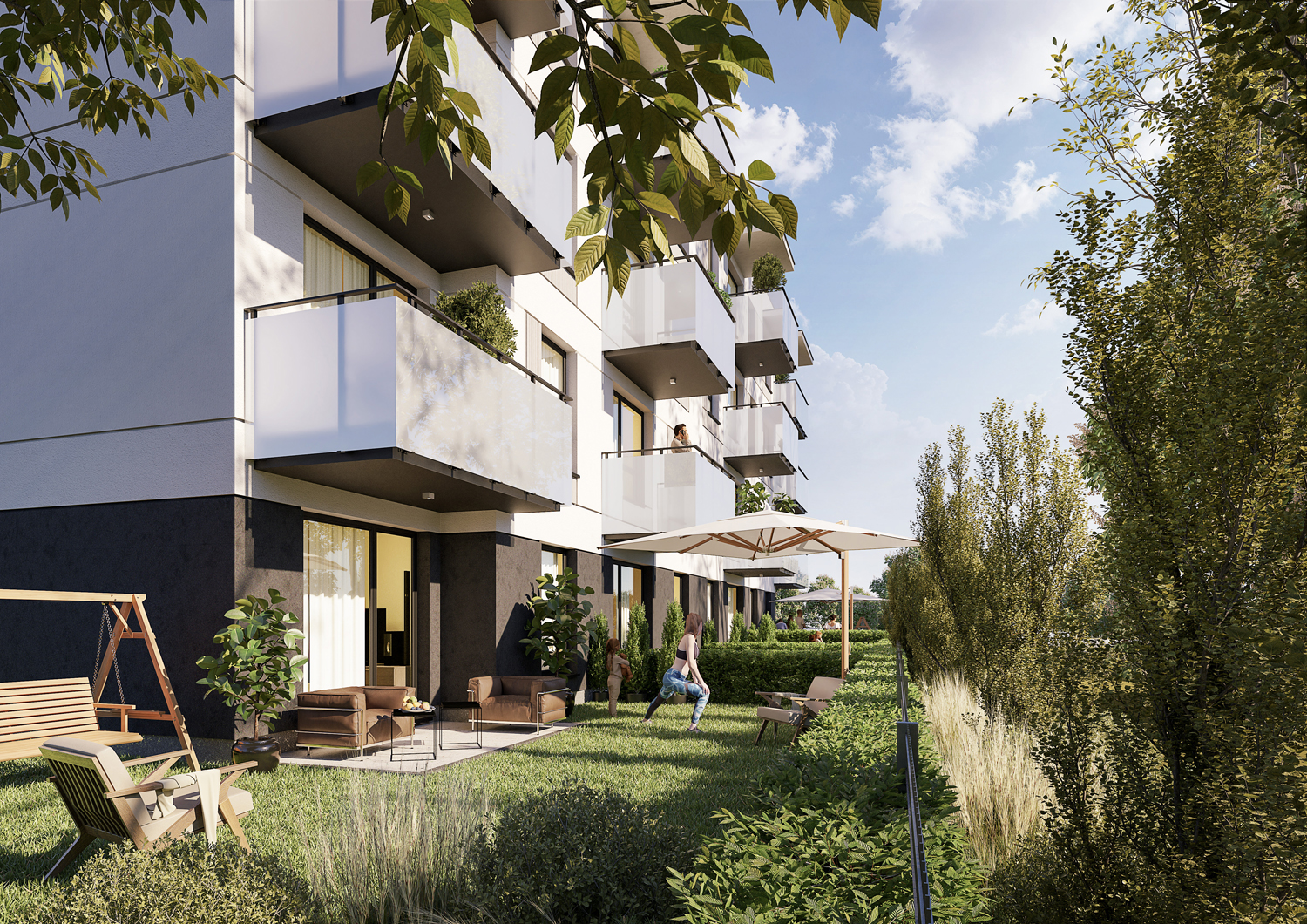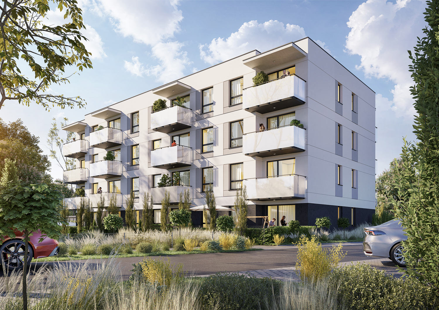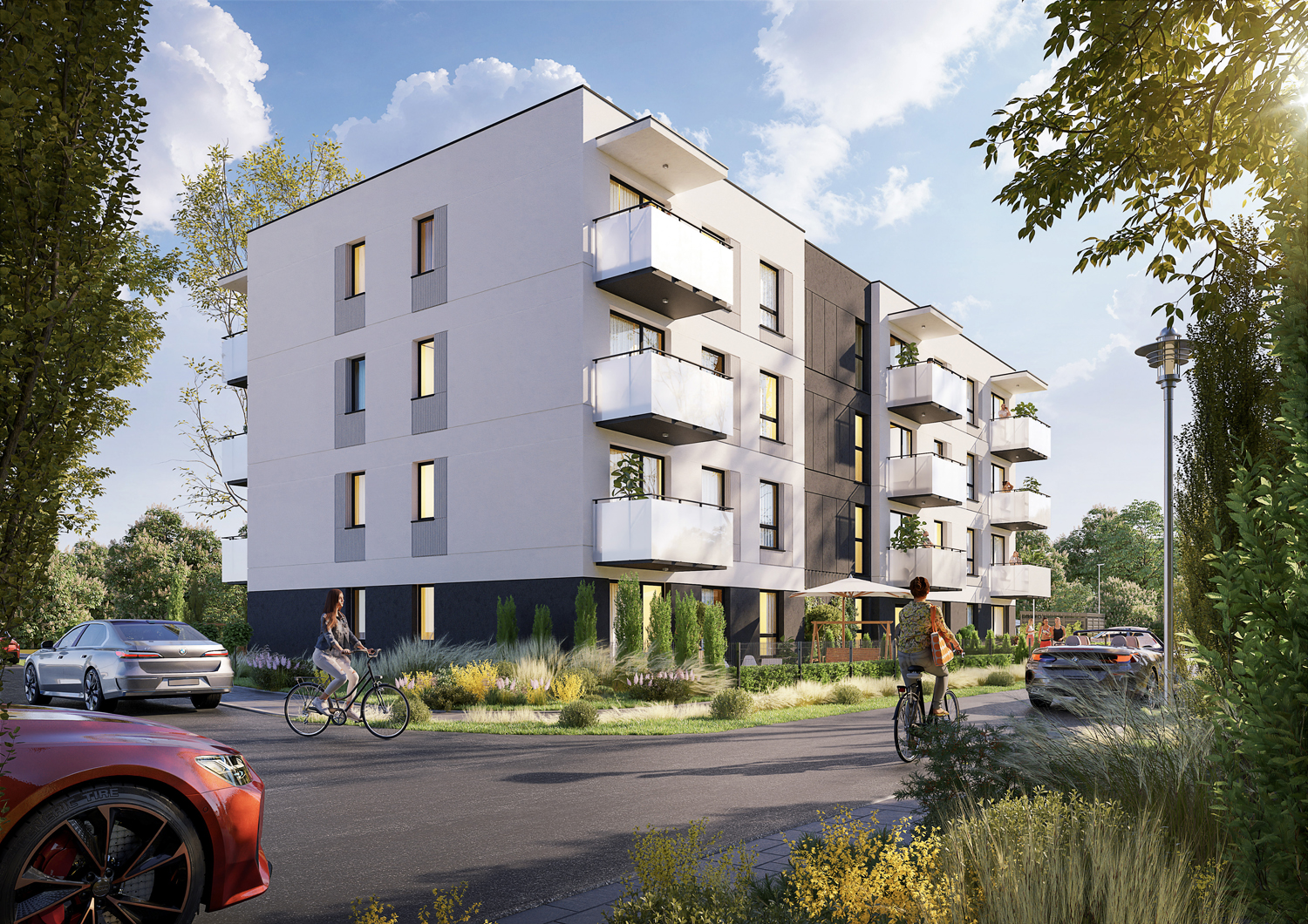 Nowoczesny budynek z garażem podziemnym ułatwia parkowanie i poruszanie się po terenie. Każdy lokal ma przewidziane minimum jedno miejsce postojowe, a układ dojść i dojazdów z kostki zapewnia wygodę i bezpieczeństwo ruchu. Standard zakłada rozwiązania minimalizujące hałas i emisje. Dzięki temu codzienne funkcjonowanie — od powrotu z pracy po czas wolny — jest po prostu wygodniejsze.